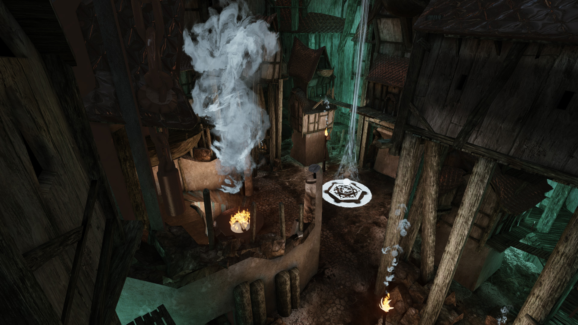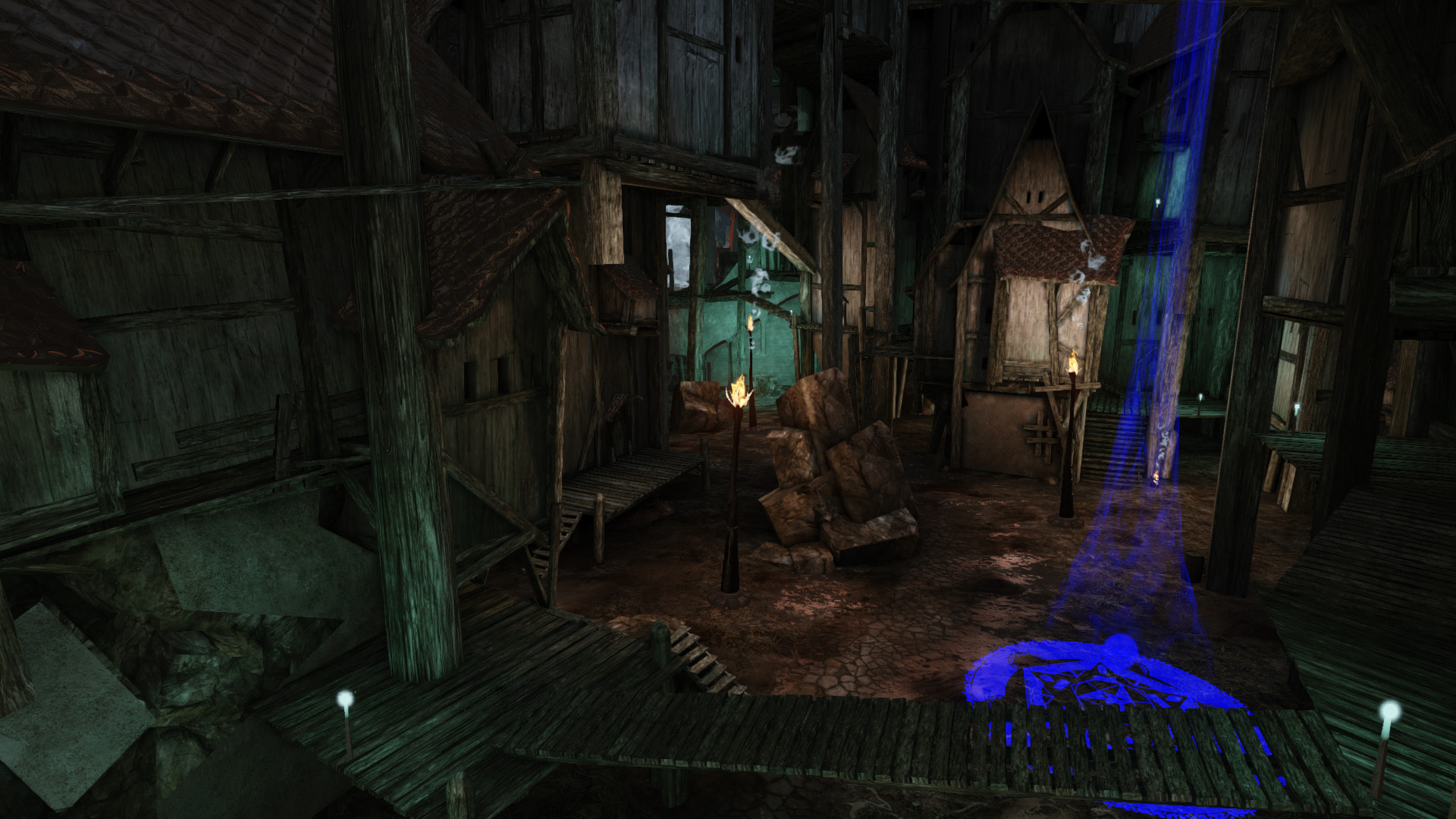 This simple level was designed to introduce players to the game’s mechanics and general control scheme. Unreal Kismet visual scripting was used for nearly all aspects and the level’s layout is setup in a way that introduces players first to movement, then non-class spells, Fire class spells, and then finally the Conquest game mode mechanics.